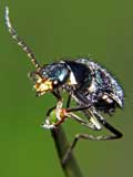 Im Frühjahr 2010 sah ich diese kleinen, etwa 5 mm groß Käfer öfters, aber sie sind sehr flink, (sehr schlecht für Fotografen); diese Käfer waren offensichtlich abgelenkt, somit gelang mir diese Aufnahme.