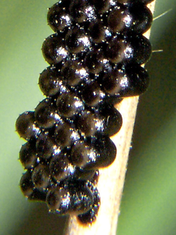 Viele, der kleinen, etwa 2 mm großen Kleidocerys resedae saßen im Sonnenschein des Spätherbsttages auf verschiedenen Bäumen und Gräsern. Gesehen 18.11.2007 Essen/NRW..