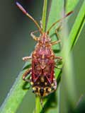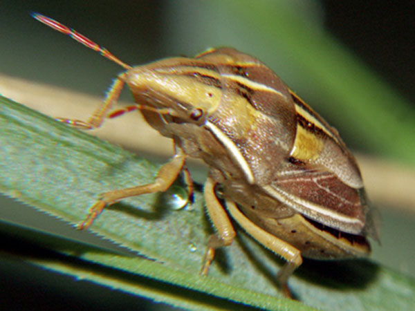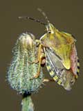 Pentatomidae: Wanzen haben stechend-saugende Mundwerkzeuge, ihre Unter- und Oberkiefer sind zu Stechborsten umgewandelt, die in Ruhelage von der Unterlippe eingehüllt werden. Mit den Stechborsten können Wanzen an Pflanzen und auch Blut von Säugetieren saugen (Bettwanzen).